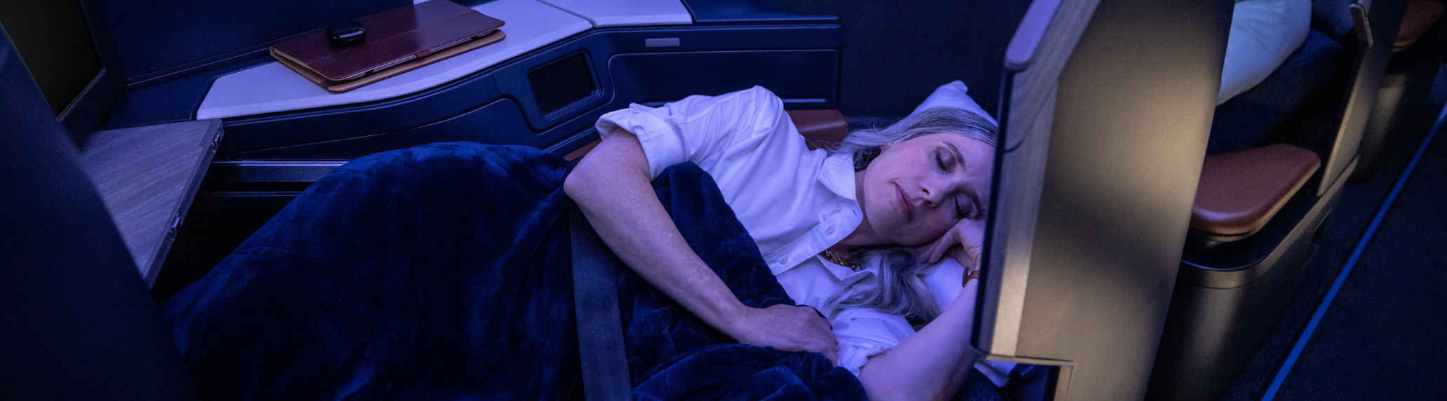 Before your clients start their Canadian travel story, they can put their seat down and feet up in the Business cabin. Available on board our Boeing 787 Dreamliner, guests seated in the Business cabin experience private pods offering lie-flat seating, fully extendable privacy screens, premium bedding, Canadian-sourced amenity kits and thoughtfully prepared meals with a curated wine list and exclusive snacks. Enjoy hundreds of hours of entertainment on 18.5-inch touch screen monitors, two checked bags, priority services and more. Your clients will arrive rested and ready for their adventure.